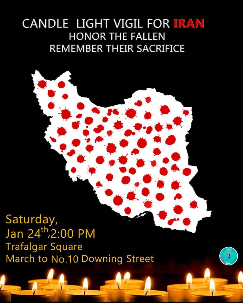 A broad spectrum of Iranians and supporters will lay a peaceful temporary memorial at Richmond Terrace, Whitehall, and march from Trafalgar Square, and hold a rally at 10, Downing Street.